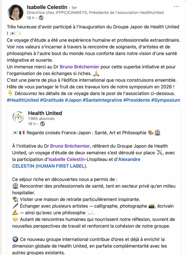 Parmi les ponts les plus féconds que j’ai eu la chance de construire, celui entre l’hypnose thérapeutique et la culture japonaise m’a profondément transformé. Cette rencontre, survenue il y a une douzaine d’années, a éveillé en moi une compréhension nouvelle du soin et de la présence. J’ai découvert de multiples affinités entre ces deux univers : une attention fine aux sensations, un respect profond du silence, une ouverture à ce qui advient, au-delà du contrôle.