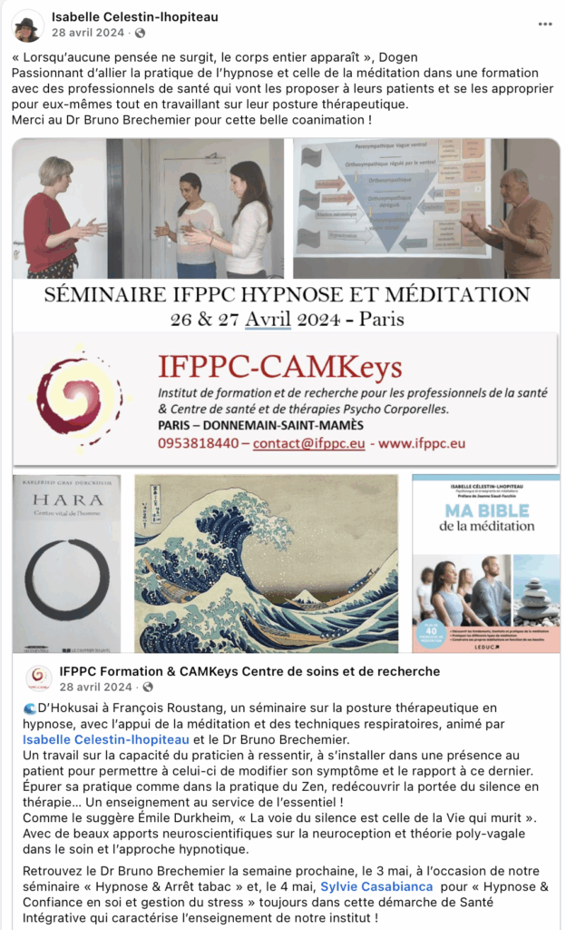 - D.I.U. Pratiques psychocorporelles et Santé intégrative, Université Paris-Saclay, Faculté de Médecine